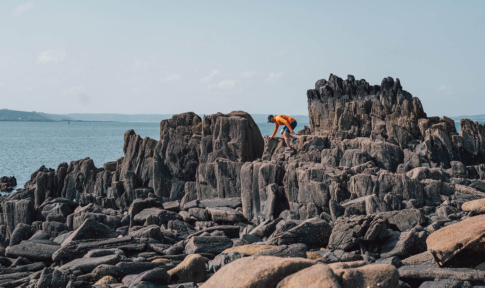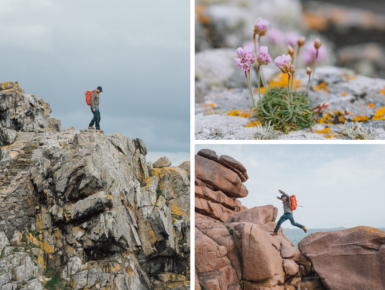 The day before, we’d been a little farther east from our base in Perros-Guirec. We’d started at Ploumanac’h, a nearby village port on the northern tip of the promontory. It’s here where the pink granite is at its brightest and most fun. The 300-million-year-old granite is composed of three minerals: black mica, quartz and feldspar – it’s the iron oxide in the feldspar that gives this 25 hectares of granite its pink hue.