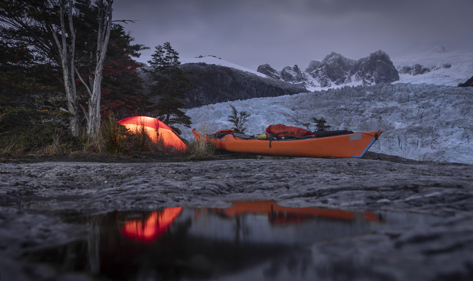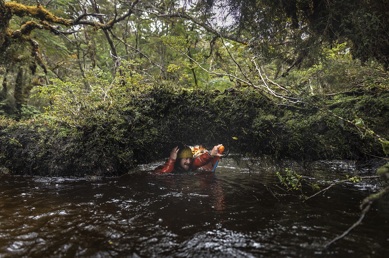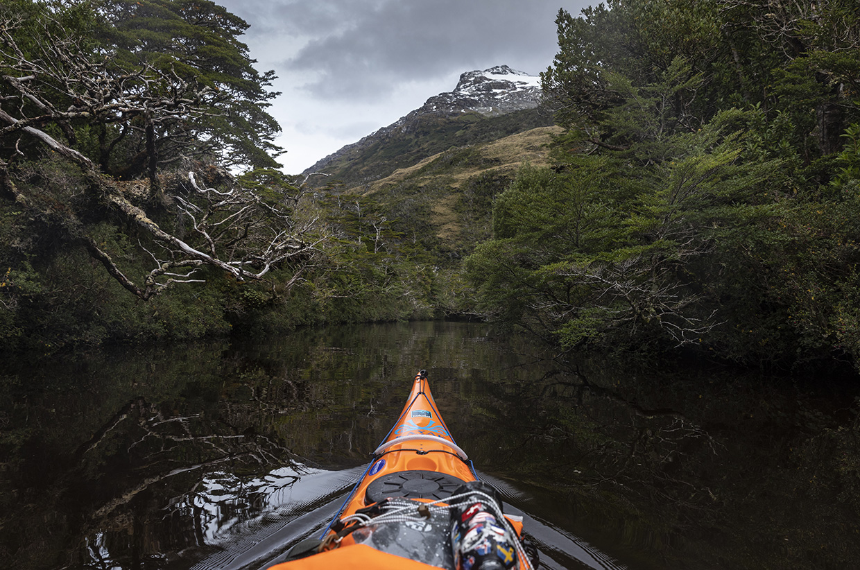 This is why I’d picked an unusual route inland, avoiding the exposed Canal Brecknock – which could trap us with strong winds – in favour of a dead-end fjord and a 5km portage across a mountain pass. We knew all too well the arduous nature of portaging here, but this adventure offered the opportunity to follow the long-forgotten paths of the Kawésqar people, who had navigated these fjords by canoe long before the West had arrived.