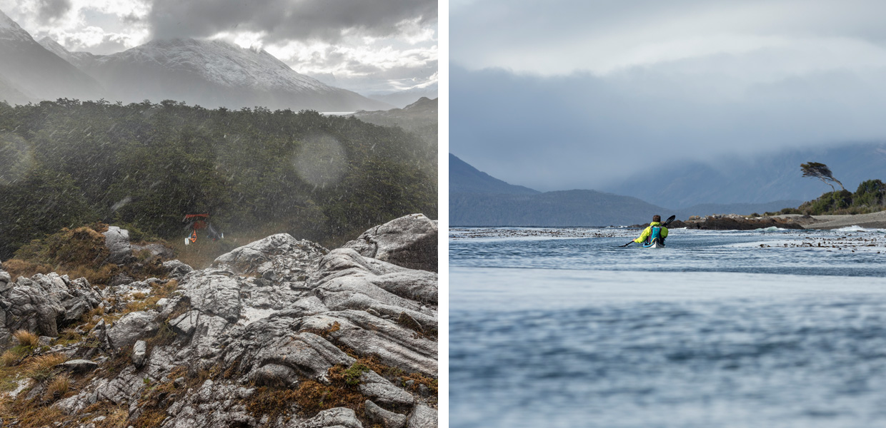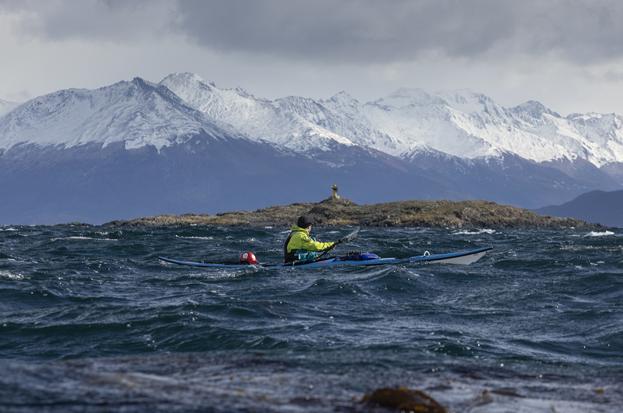 It’s an odd feeling being far from shore in a kayak. There is a thrill in the sense of isolation, and a heightened awareness of one’s surroundings. On our first day we turned towards Cabo Froward, the southern tip of the continent, and spent the final hours fighting gale-force winds along the coast. The whole time we stared out into the exposed sea of white-capped waves with trepidation. ‘You know what?’ Seumas called across the wind. ‘Crossing the Magellan Strait in weather like this would not be fun.’