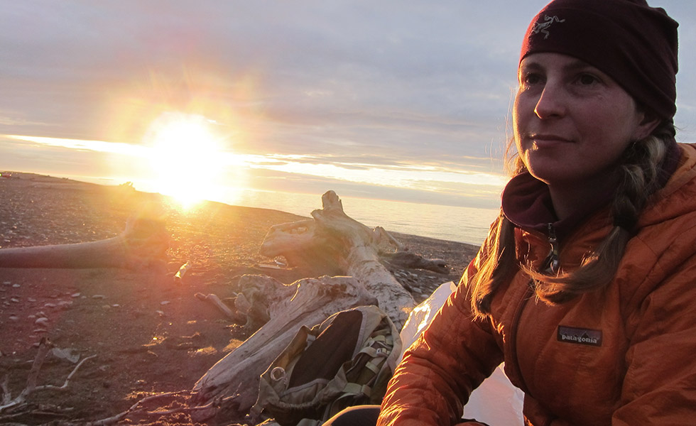 It’s 3 am on July 10th and we have just landed our packrafts on the shore of the Arctic Ocean. In this land of 24-hour light, our internal body clocks seem to be following the rhythm of another planet. With no obvious variation in the angle of the sun, just a steady circling of the horizon, each day stretches longer than the last. We lose ourselves in the steady motion of footfall on sand or are hypnotized by the shape-shifting horizon. We feel pushed to keep moving, long past our conventional dinnertime and bedtime, dancing to the whims of the north.