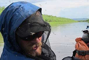 This wasn’t what we had in mind when we set out in March 2012 to travel nearly 4000 miles by human power. We knew that our schedule would be ambitious—in order to make it in six months from Puget Sound to Northwestern Alaska by rowboat, ski, packraft, and foot, all without roads or trails, we needed to average more than 25 miles a day. But to think that, after rowing the length of the Inside Passage, crossing several mountain ranges, and enduring months of much more physically demanding activities, a bunch of buzzing insects and sticky mud could drive us to the lowest point of our journey. We knew that the Mackenzie Delta would be trouble. But we didn’t see any way around it. As part of our larger goal, we needed to get from the northern Yukon Territory to the Arctic Ocean. The massive Mackenzie River offered the most logical, if not the most pleasant, passage. We’d learned by now that to accomplish our goal sometimes meant sucking it up and enduring. This was one of those times. It just went on a lot longer than we’d hoped.