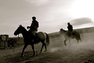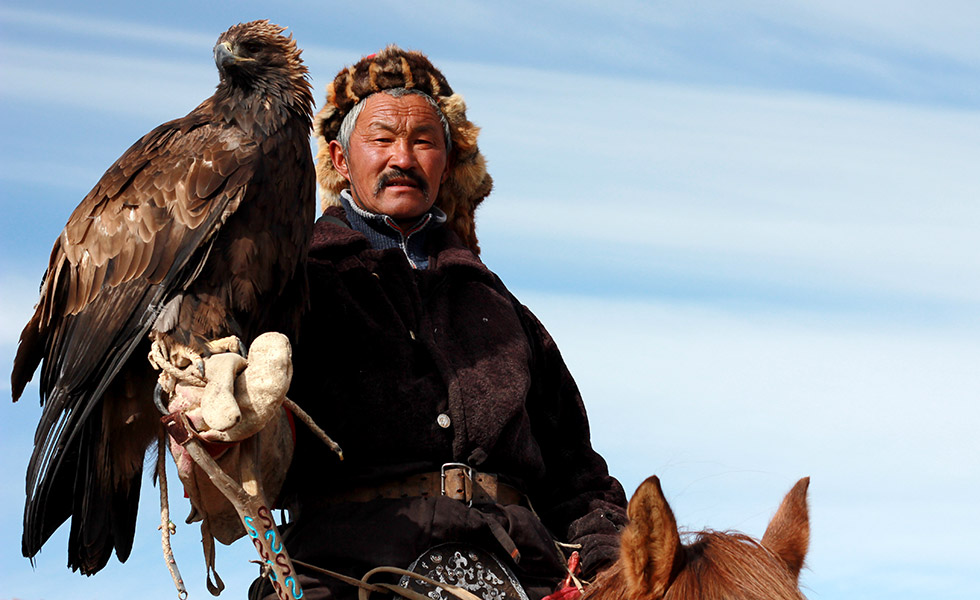 Matt and I had come to the region to meet Alpamys in person, to ride with him, and to hopefully learn about looking after horses in the steppe, all in preparation for a 1700km horse-riding expedition the three of us we would undertake together next year. We had also come to meet, photograph, and ride with the province's fabled eagle hunters who - in a thousand year old uninterrupted tradition – have made a living catching their prey using giant hand-reared Golden Eagles. Indeed, it had been no small task just to get to this starting point in the frontier border town of Ölgii; the pair of us having traversed a distance much greater than the length of the UK, offroad - over three days with three punctures and one near-disastrous incident of an airborne automobile flying down a hillside. After that, the notion of horse-riding seemed positively tame by comparison.
