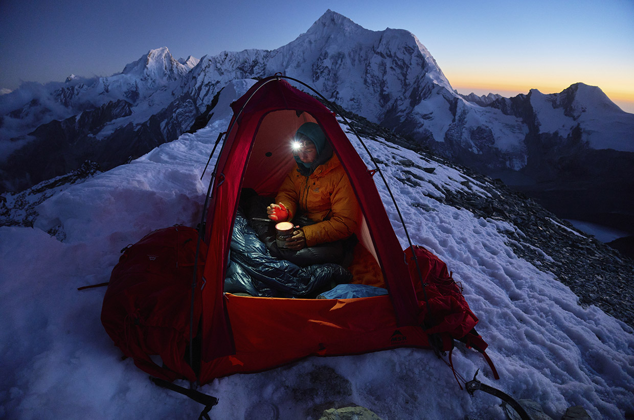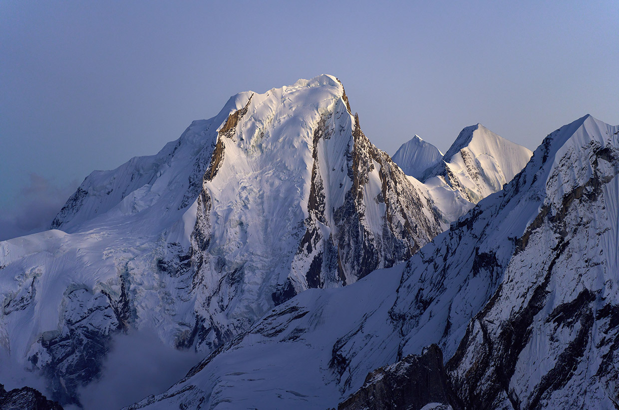 After a day of approach, the first day’s climbing was one of the most demanding I’d ever had in the mountains. Icy runnels and steep, loaded snow slopes. Over 1,000m of vertical in bad weather and on tired legs. As the daylight faded, we at last reached the ridge. Then, on day two, a narrow mixed ridge – sparse protection, run out, no room for error. High consequence. And that was before the snow and cloud returned. With increasing concerns around poor visibility and a high chance of making a mistake and falling down the south face, we decided to bivvy on a small ledge. We’d push for the summit in the morning.