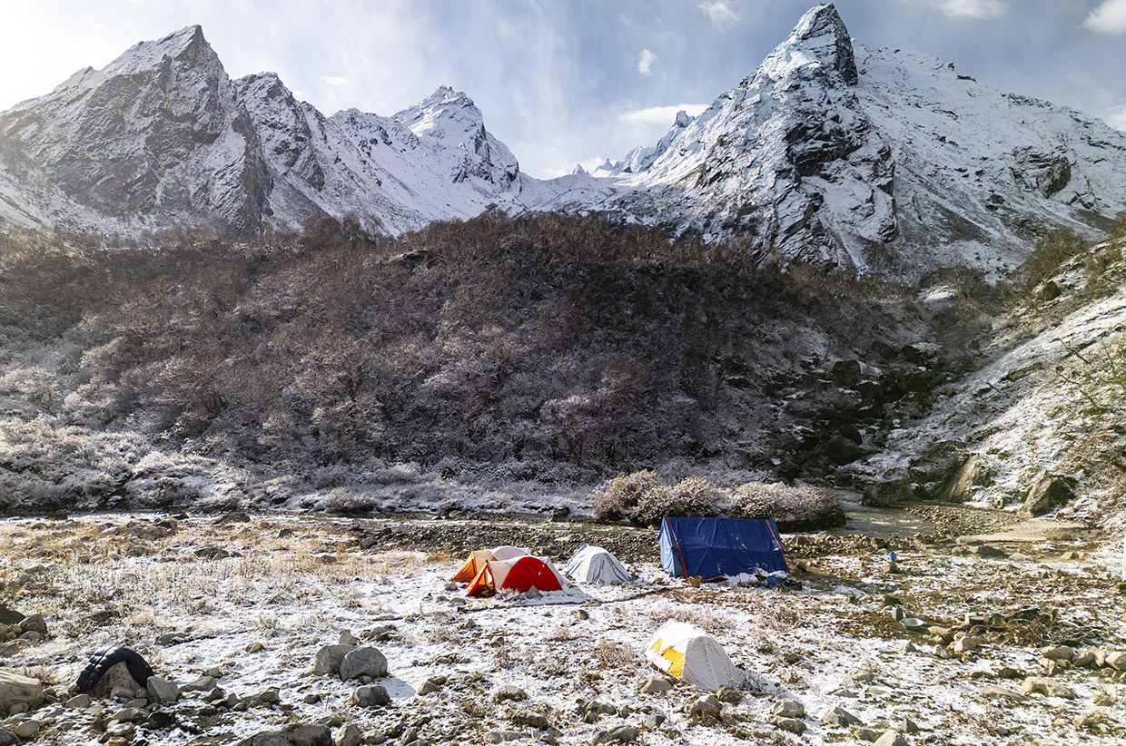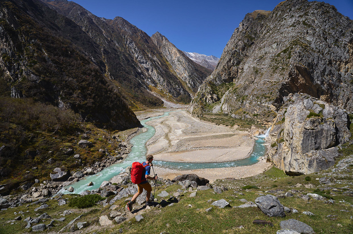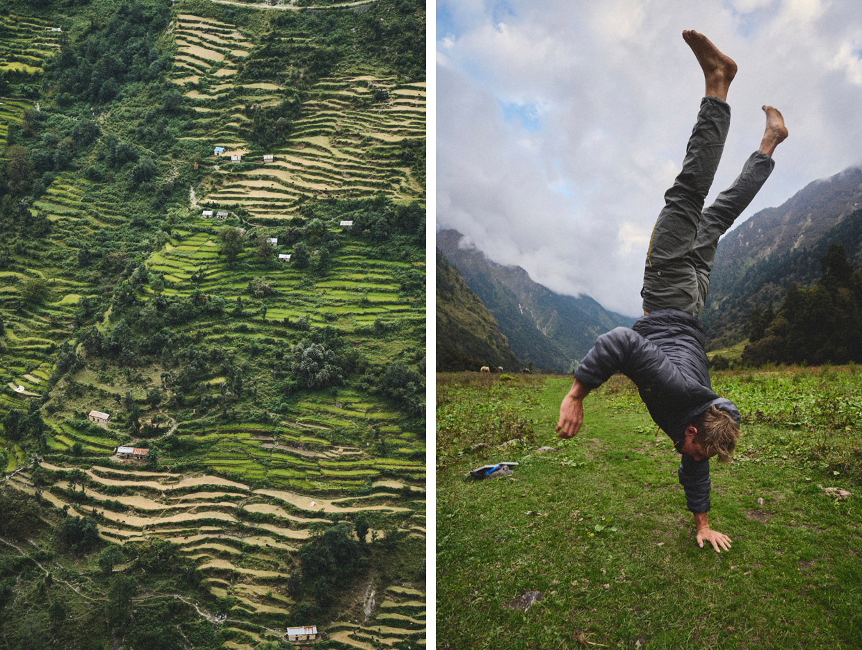 Two days’ drive north from the nearest airport along winding, potholed roads. Seven days’ trek through the foothills of the Himalaya. Jungle, insects, sounds, and colours overwhelmed us. We took relief from the end of the monsoon heat, swimming in glacial rivers and lounging on warm slabs of granite. As we neared the Salimor Khola Valley, it began to get colder. The seasons were changing.