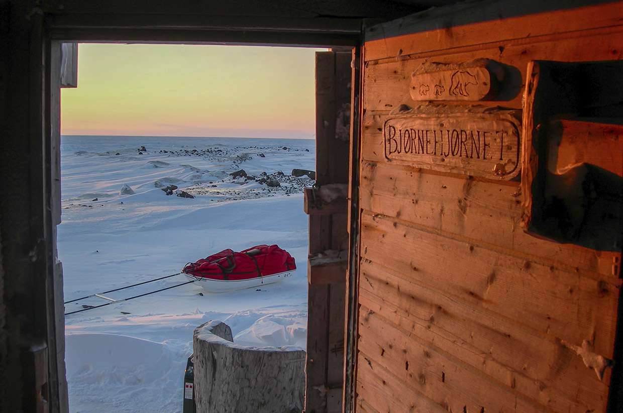 ‘I’ve had my fair share of close encounters with polar bears,’ Fredrik starts his next story. ‘Many of them around camp or cabin, like this one. That’s where a bear can use the element of surprise. We are in control when we meet a bear out on the ice. I was leaving a cabin one early morning a few years ago, getting more snow to melt for coffee.’ He pauses, and his eyes go to the door, locked from the inside. ‘As I pushed the door open, he was there, just a couple of feet away, staring me straight in the eye. He could have killed me in a fraction of a second, but my first thought was, Oh, that’s bad breath you have. And he was probably thinking the same thing.’ Fredrik laughs, and I almost choke on the tea in my hands. I was expecting a more empowering story of living in a cabin. Fredrik continues: ‘We just looked at each other. Then I came to my senses and hit him gently on the shoulder with my rifle. He looked surprised, even disappointed, and slowly walked away. A grumpy old bear continued his journey. And I got my morning coffee.’