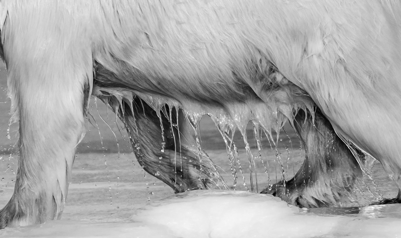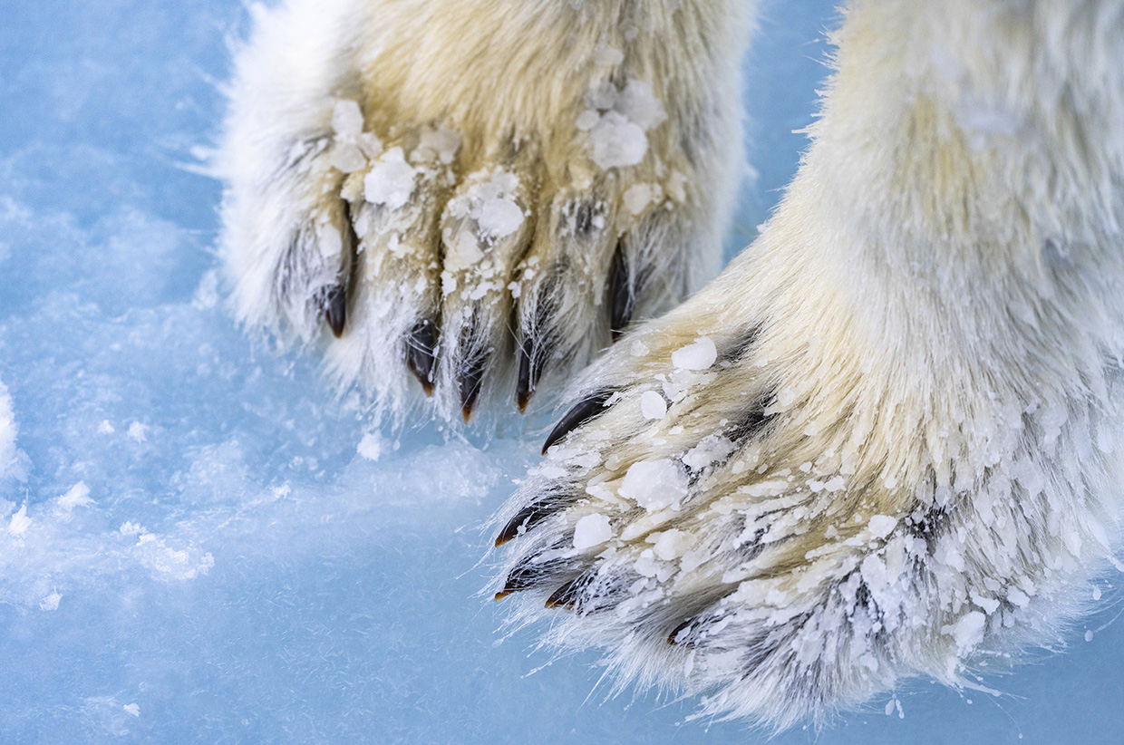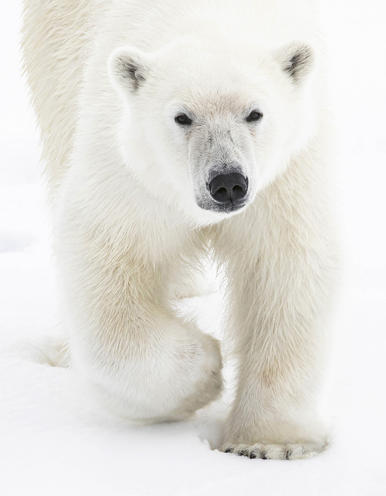 Fredrik whispers, ‘She can smell you… she can feel you. She’s trying to figure out who, or what, you are.’ In low voices we talk about the enormous presence one feels with a polar bear this close. ‘Inuit elders say that a polar bear can hear your thoughts. “Don’t think ill of the bears,” they warn, “for that might make them angry.”’