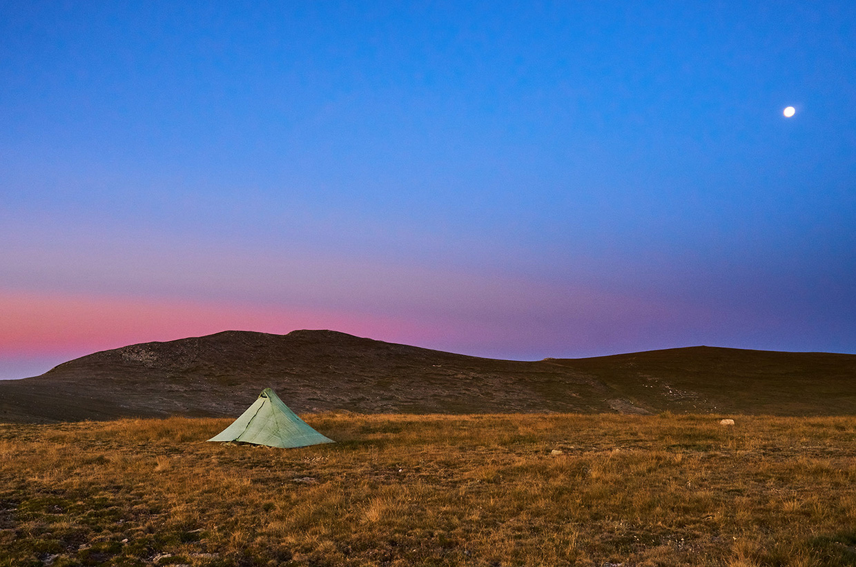 My camp that night on the ridge was the best of the whole trip. I woke to a deep silence. The purple Belt of Venus spread over the sky, pushing back the moon and the stars, lighting up the grassland around me in ethereal colours. I was completely alone. The gift of solitude in that moment was precious, and yet it felt like a poignant gift, for my self-imposed social media moratorium meant that I would carry this treasure in my own memory alone. There is value in silence, but there is also value in connection. After a month away from social media I craved a little more balance.